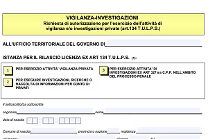 Riportiamo qui il modulo di tre pagine per l’autorizzazione all’esercizio d’attività di vigilanza e (o) di investigazioni private messo a disposizione dalla Polizia di Stato Italiana. Oltre alle due pagine da completare il documento presenta avvertenze e alcuni articoli di legge da studiare con attenzione.