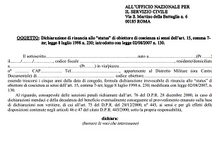 Modulo per rinunciare allo status di obiettore di coscienza