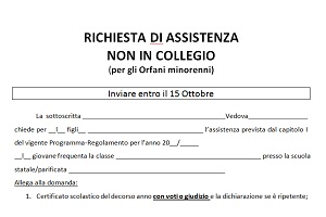 Riportiamo qui i due moduli dell’Esercito italiano per le richieste di assistenza non in collegio, la prima per orfani minorenni e la seconda per orfani maggiorenni.