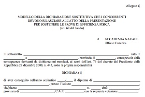 Concorso Accademie Militari 2013, il modulo della dichiarazione sostitutiva
