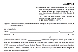 Moduli Finanza per concorso da allievi aeronavali, certificato medico e per accertamenti sanitari